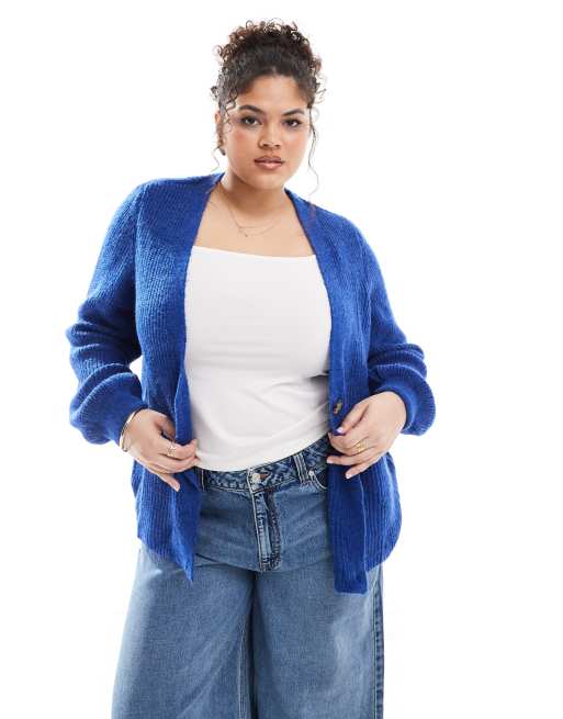 ONLY Curve – Zapinany na guziki kardigan w niebieskim melanżowym kolorze