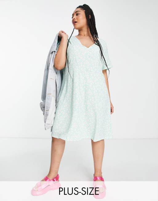 Only Curve – Zielona sukienka z dekoltem w szpic we wzór w kwiaty