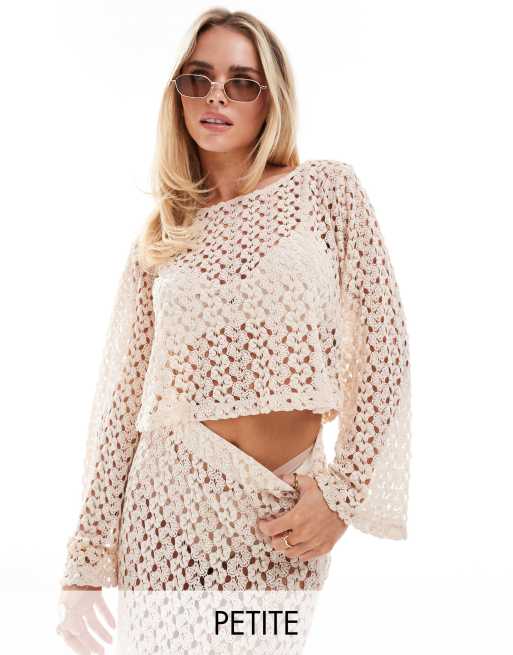ONLY Petite – Szydełkowany kremowy top z długimi rękawami, część zestawu