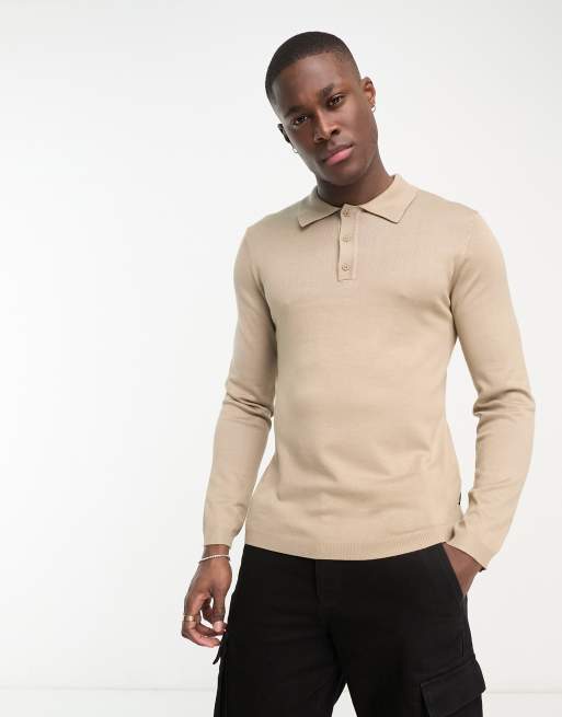 Only & Sons – Beżowa dzianinowa koszulka polo z długim rękawem