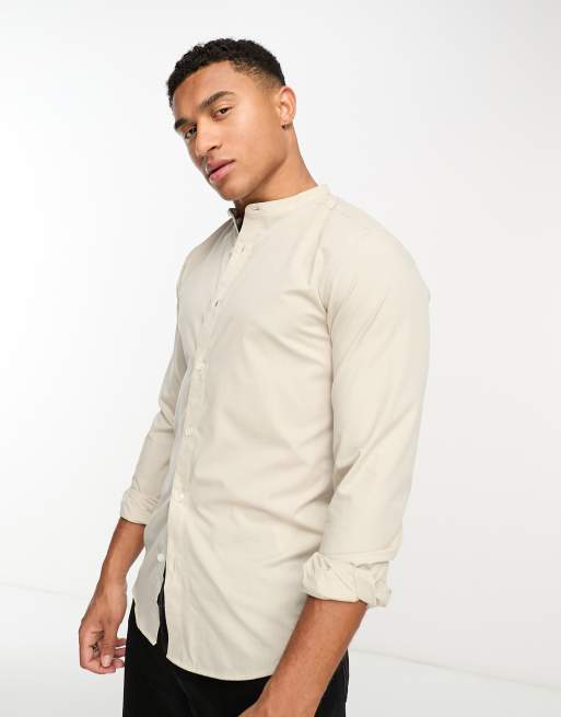 Only & Sons – Beżowa koszula popelinowa ze stójką