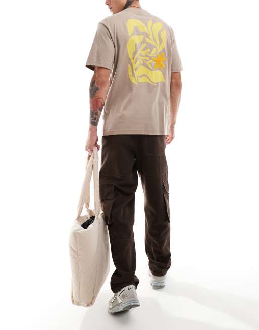 ONLY & SONS – Beżowy T-shirt o luźnym kroju z kwiatowym nadrukiem na plecach