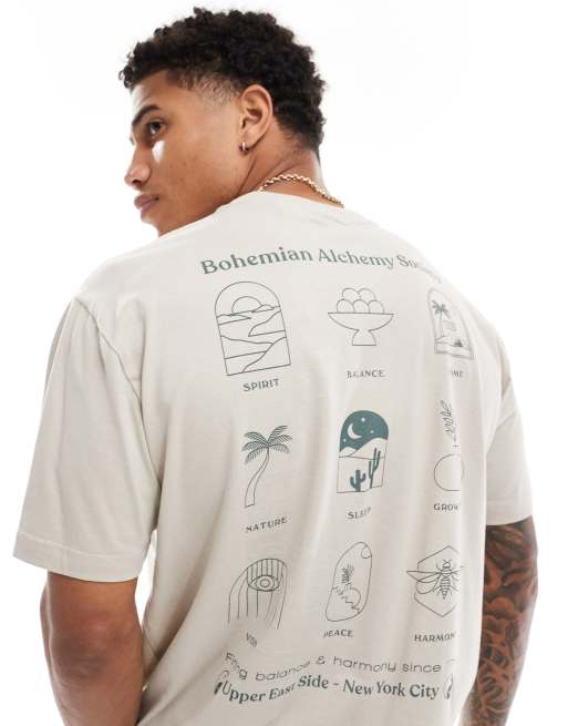ONLY & SONS – Beżowy T-shirt o luźnym kroju z nadrukiem na plecach