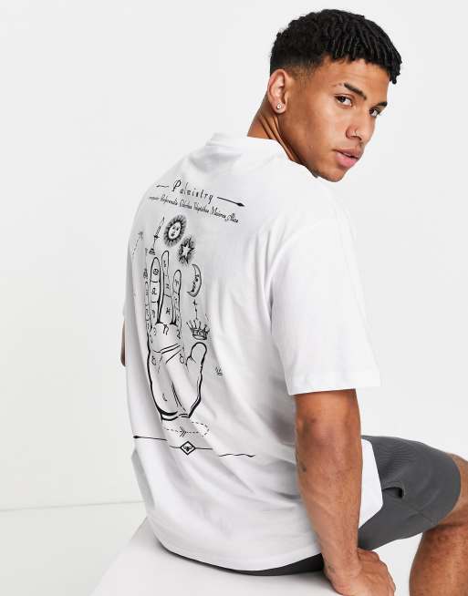 Only & Sons – Biały T-shirt oversize z nadrukiem dłoni przeznaczenia na plecach