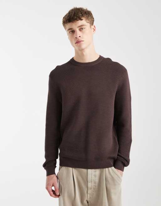 ONLY & SONS – Brązowa prążkowana bluza z okrągłym dekoltem