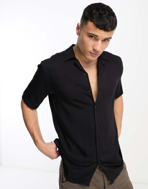 Only & Sons – Czarna wiskozowa koszula z krótkimi rękawami i kubańskim kołnierzykiem