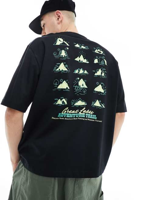 Only & Sons – Czarny T-shirt oversize z nadrukiem gór na plecach