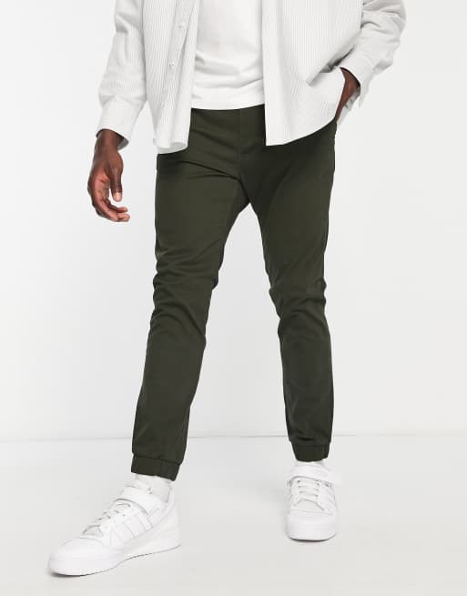 Only & Sons – Dopasowane chinosy w ciemnym odcieniu khaki ze ściągaczami i elastyczną talią