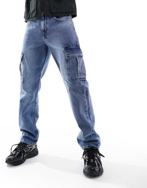 Only & Sons – Edge – Niebieskie jeansy bojówki o prostym kroju