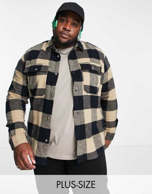Only & Sons – Flanelowa koszula wierzchnia w beżowo-granatową kratę