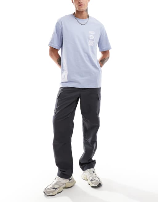 ONLY & SONS – Jasnoniebieski T-shirt o luźnym kroju z nadrukiem z symbolami