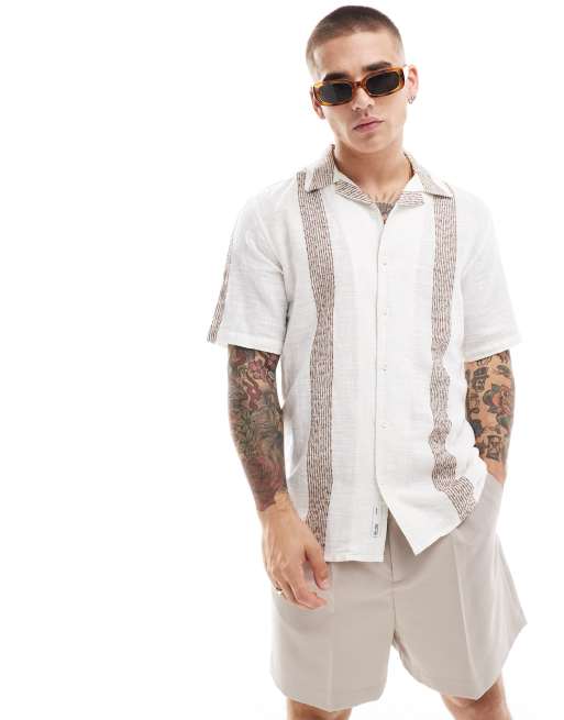 Only & Sons – Kremowa koszula z kołnierzykiem kubańskim w paski z dzianiny boucle