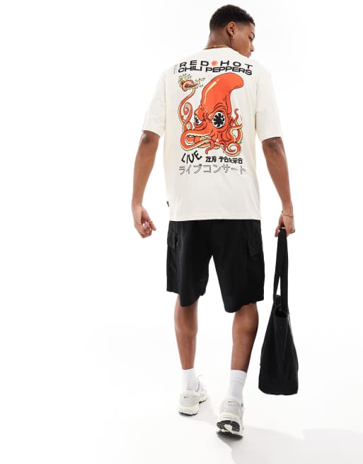 Only & Sons – Kremowy luźny T-shirt z nadrukiem z motywem Red Hot Chili Peppers