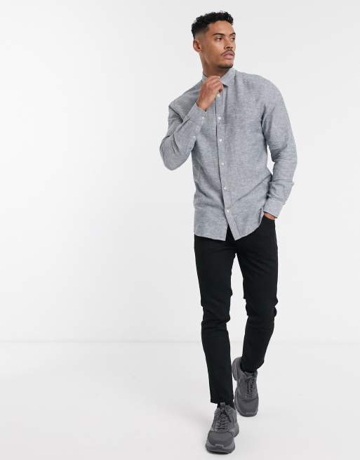 Only & Sons – Niebieska dopasowana koszula z lnem