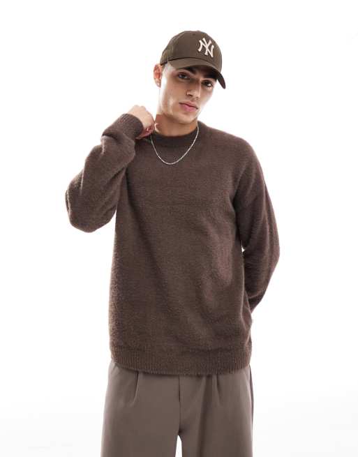 ONLY & SONS – Szczotkowany brązowy sweter z okrągłym dekoltem