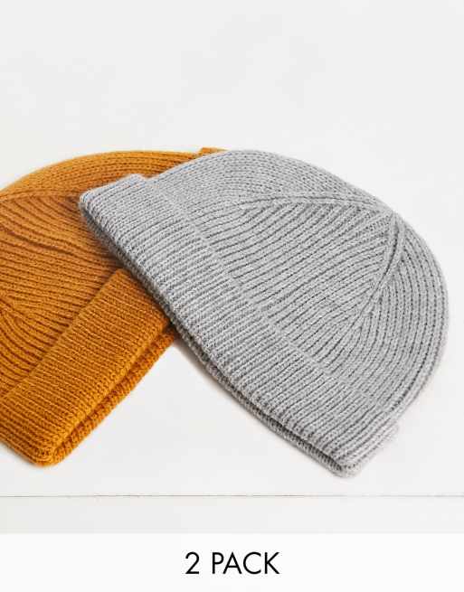 Only & Sons – Zestaw 2 czapek beanie fisherman w kolorze żółtym i szarym