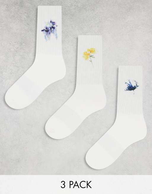 Only & Sons – Zestaw 3 par białych skarpetek tenisowych z nadrukiem kwiatka
