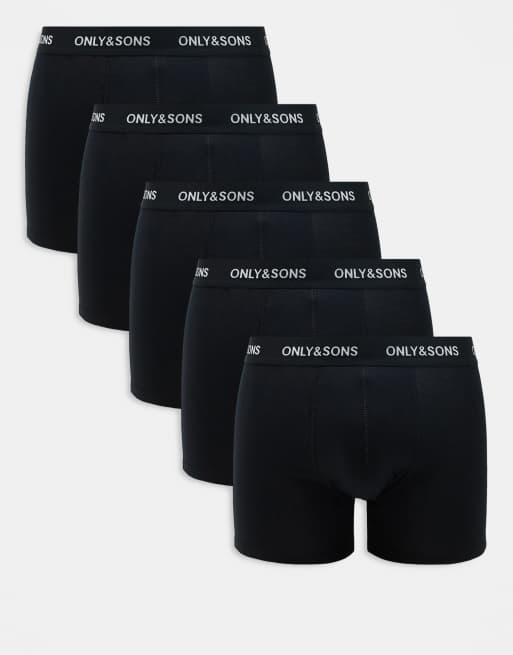 Only & Sons – Zestaw 5 par gładkich czarnych bokserek