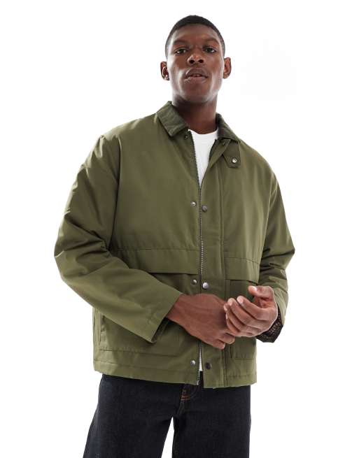 ONLY & SONS – Zielona ocieplana kurtka typu coach ze sztruksowym kołnierzykiem