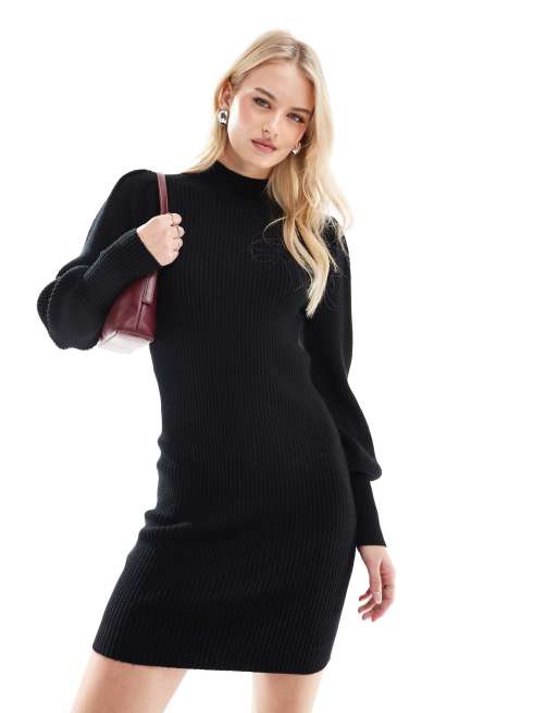 ONLY Tall – Czarna dzianinowa sukienka z golfem i rękawami typu dzwon