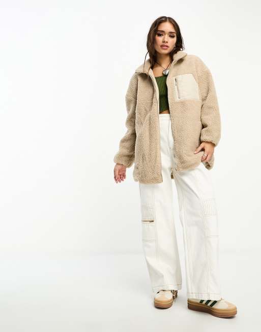 Only – Beżowa kurtka z kożuszka z odwijanym kołnierzem