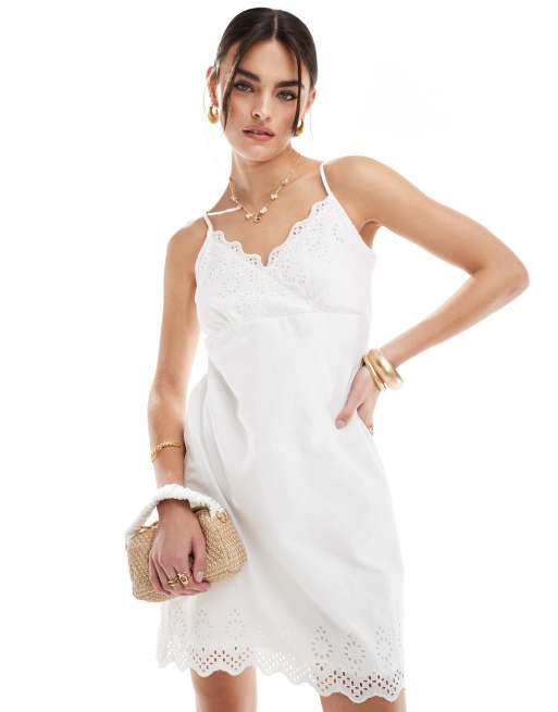 ONLY – Biała sukienka mini z haftem angielskim