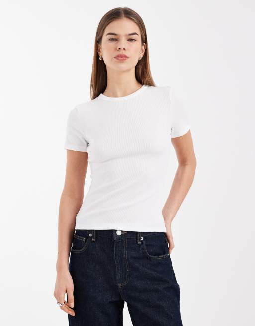 Only – Biały prążkowany top o dopasowanym kroju