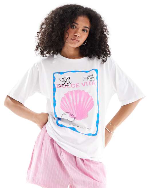 Only – Biały T-shirt o fasonie boyfriend z nadrukiem „Dolce Vita”