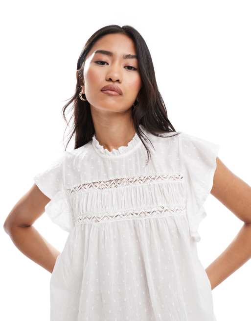 Only – Biały top z tkaniny dobby z rękawami z falbanką