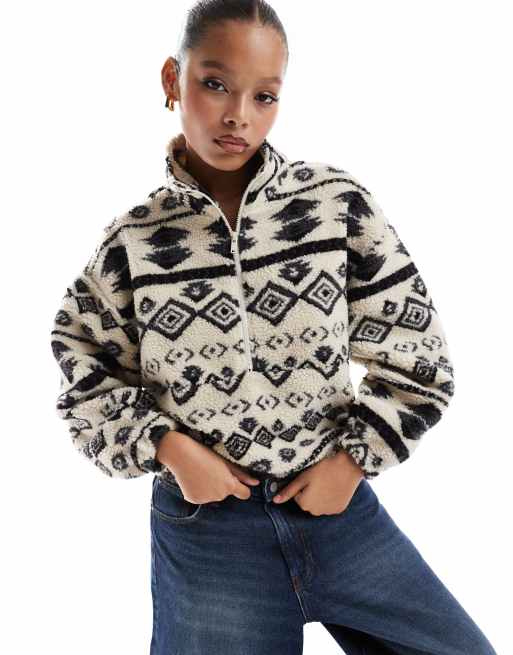 ONLY – Bluza polarowa w kolorze złamanej bieli i czarnym z suwakiem pod szyją