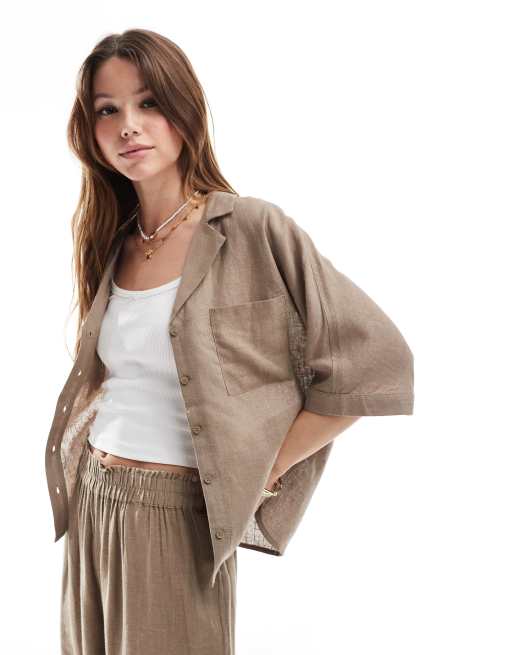 ONLY – Brązowa koszula oversize z mieszanki lnu, część zestawu