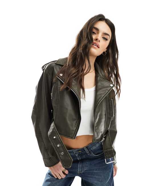 Only – Czarna sprana kurtka typu biker z imitacji skóry o krótkim fasonie