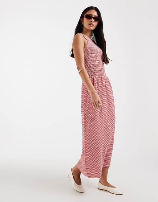 ONLY – Czerwona luźna sukienka maxi bez rękawów w kratkę vichy