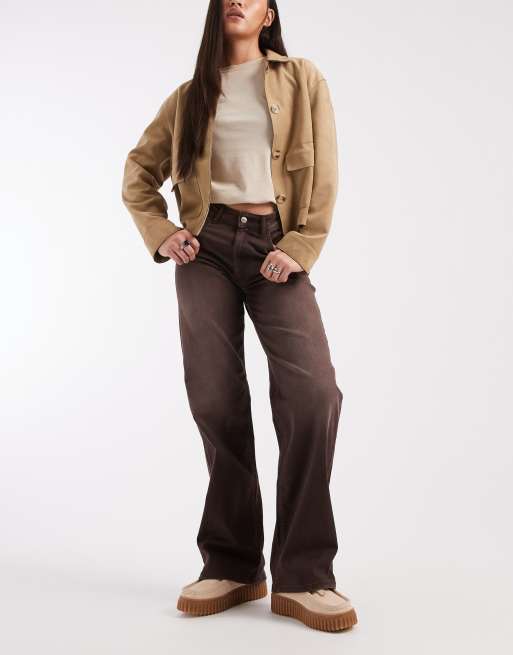 ONLY – Juicy – Ciemnobrązowe jeansy z szerokimi nogawkami i podwyższonym stanem