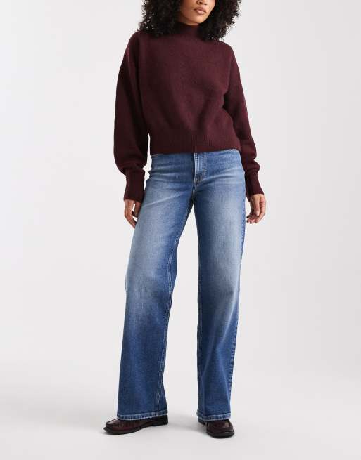 ONLY – Juicy – Ciemnoniebieskie jeansy z szerokimi nogawkami i podwyższonym stanem
