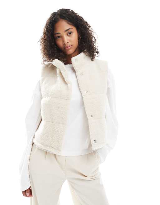ONLY – Kamiennobeżowy ocieplany bezrękawnik z kożuszka