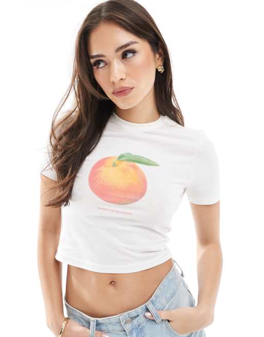 ONLY – Krótka koszulka z nadrukiem brzoskwini