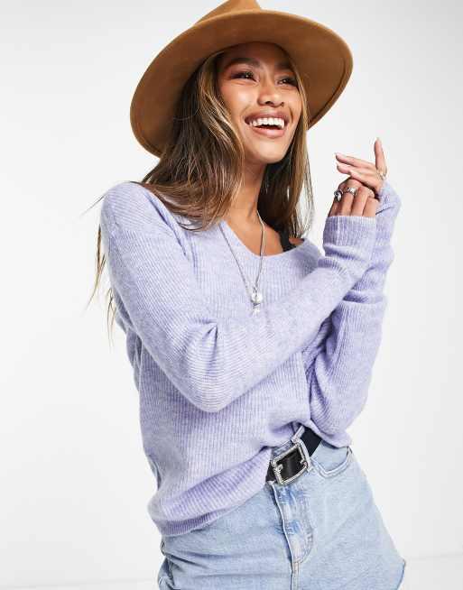Only – Niebieski melanżowy sweter z dekoltem w szpic