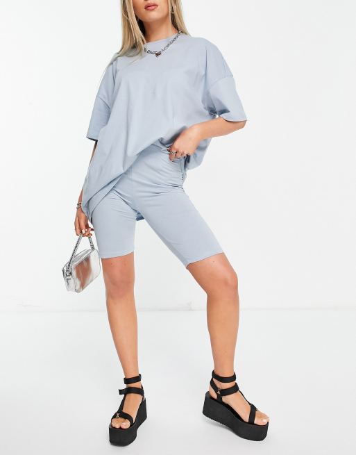 Only – Niebieski zestaw 2-częściowy: T-shirt oversize i krótkie legginsy