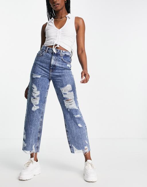 Only – Niebieskie jeansy o krótkim fasonie z prostymi nogawkami i przedarciami