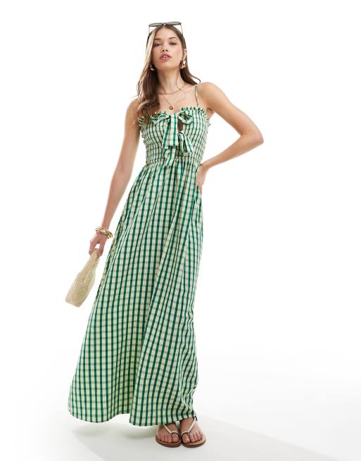 ONLY – Sukienka maxi w zieloną kratkę vichy