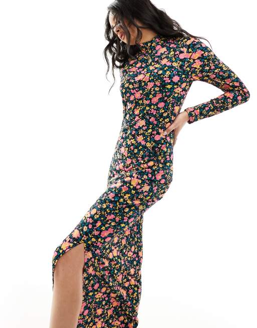 Only – Sukienka maxi z golfem i długimi rękawami w kolorowy kwiatowy wzór
