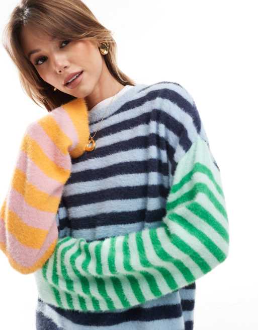 Only – Sweter z puszystej dzianiny w różnokolorowe bloki w paski