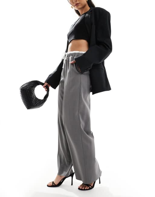ONLY – Szare dopasowane spodnie z szerokimi nogawkami