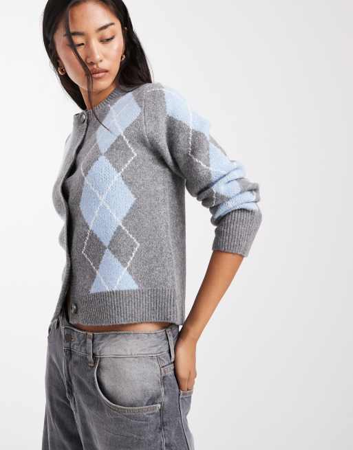 ONLY – Szary dzianinowy kardigan ze wzorem w romby