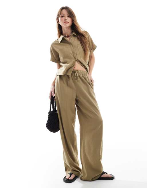 Only – Wciągane spodnie z mieszanki lnu w jasnym odcieniu khaki, część zestawu