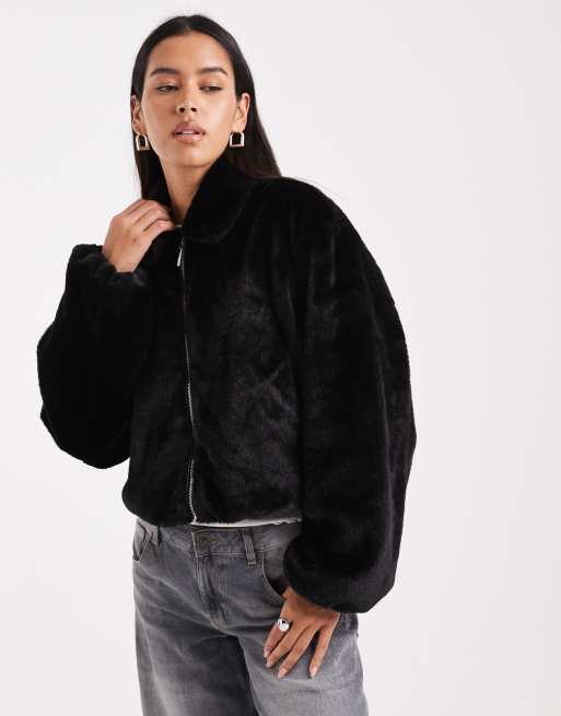 ONLY – Zapinana na suwak czarna kurtka ze sztucznego futra