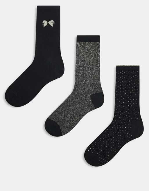 ONLY – Zestaw podarunkowy z 3 parami czarno-złotych skarpetek zapakowanych w pudełko