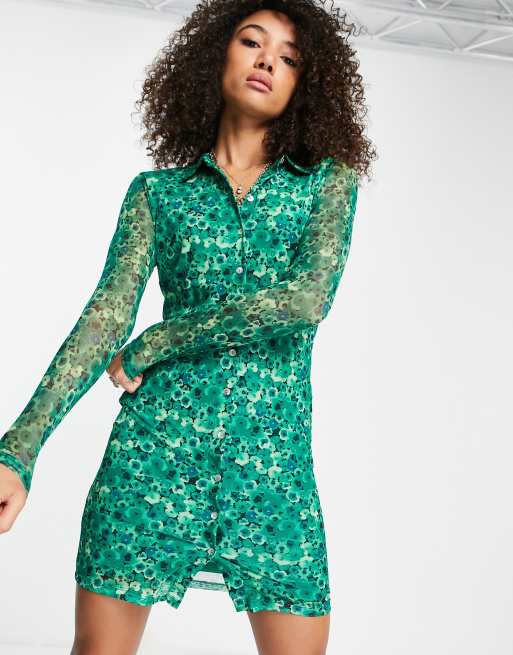 Only – Zielona sukienka koszulowa z siateczki w kwiaty
