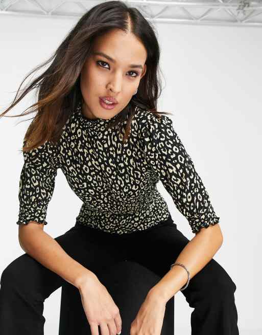 Only – Zille – Luźny czarny top w panterkę z rękawami 3/4